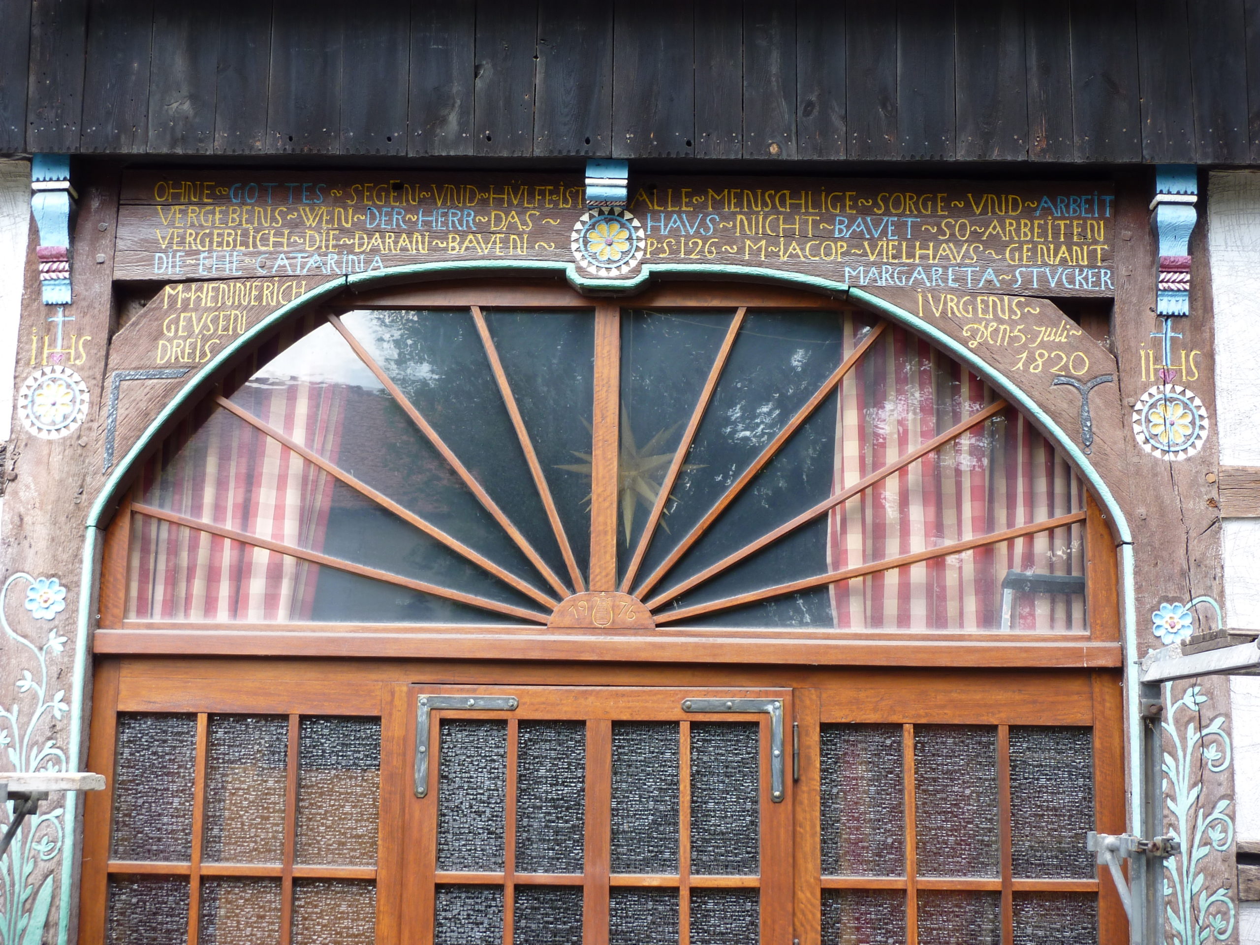 Der jetzige Torbalken über dem Haupteingang zum Musikzentrum ist unser wichtigster, noch erhaltener Nachweis aus der Gründerzeit. Auf der Inschrift steht das Datum 05. Juli 1820. Somit ist klar datiert wann das Bauernhaus, in der heutigen Form, ursprünglich gebaut worden ist. Auf dem Balken ist unter anderem auch ein Spruch eingraviert, der Name des Zimmerers „Hennrich Gevsendrees“ und natürlich die Namen des Besitzers „M. Jacob Vielhaus genannt“ und dessen Ehefrau „Catharina Margarete Stückerjürgens“.